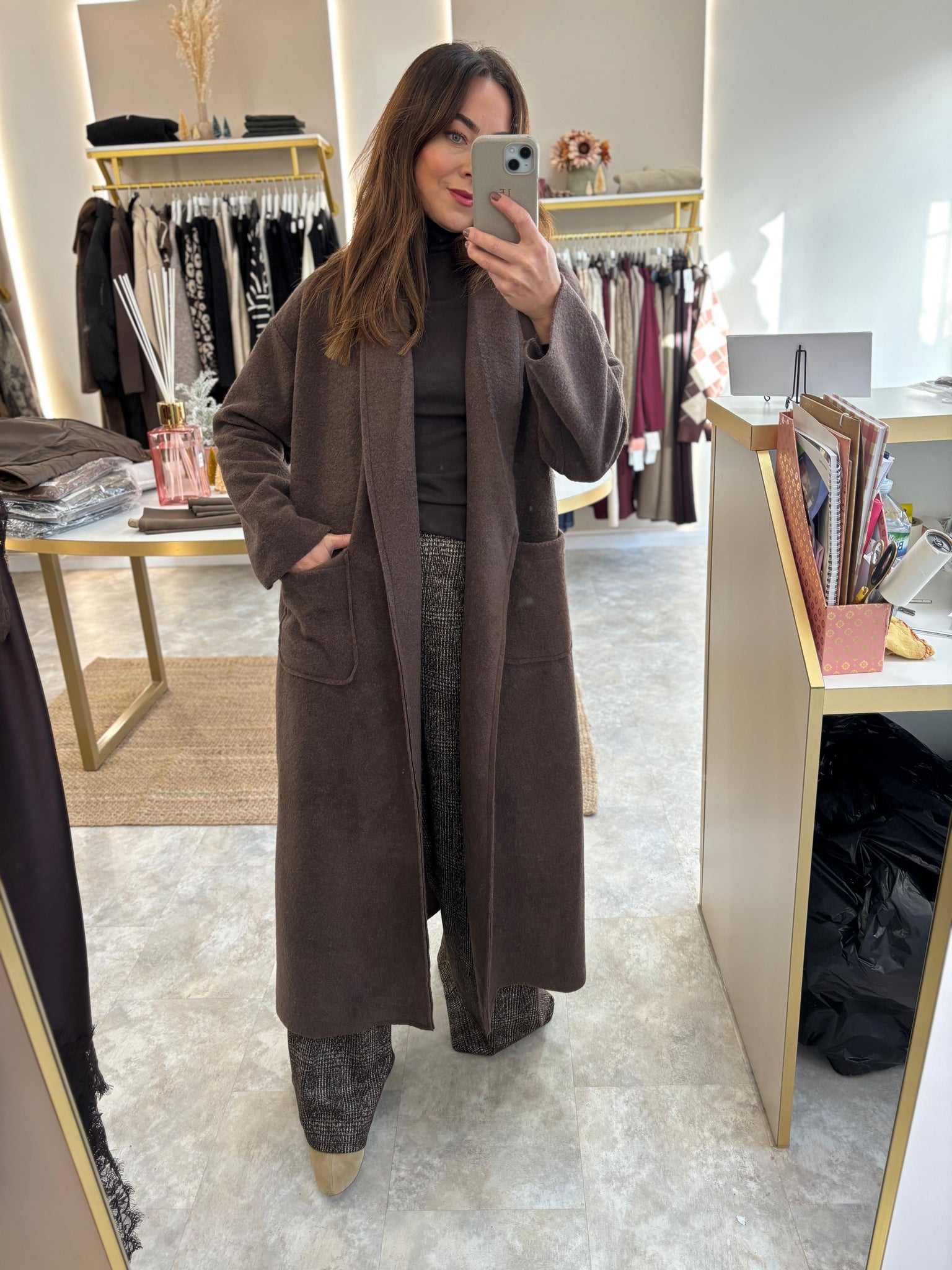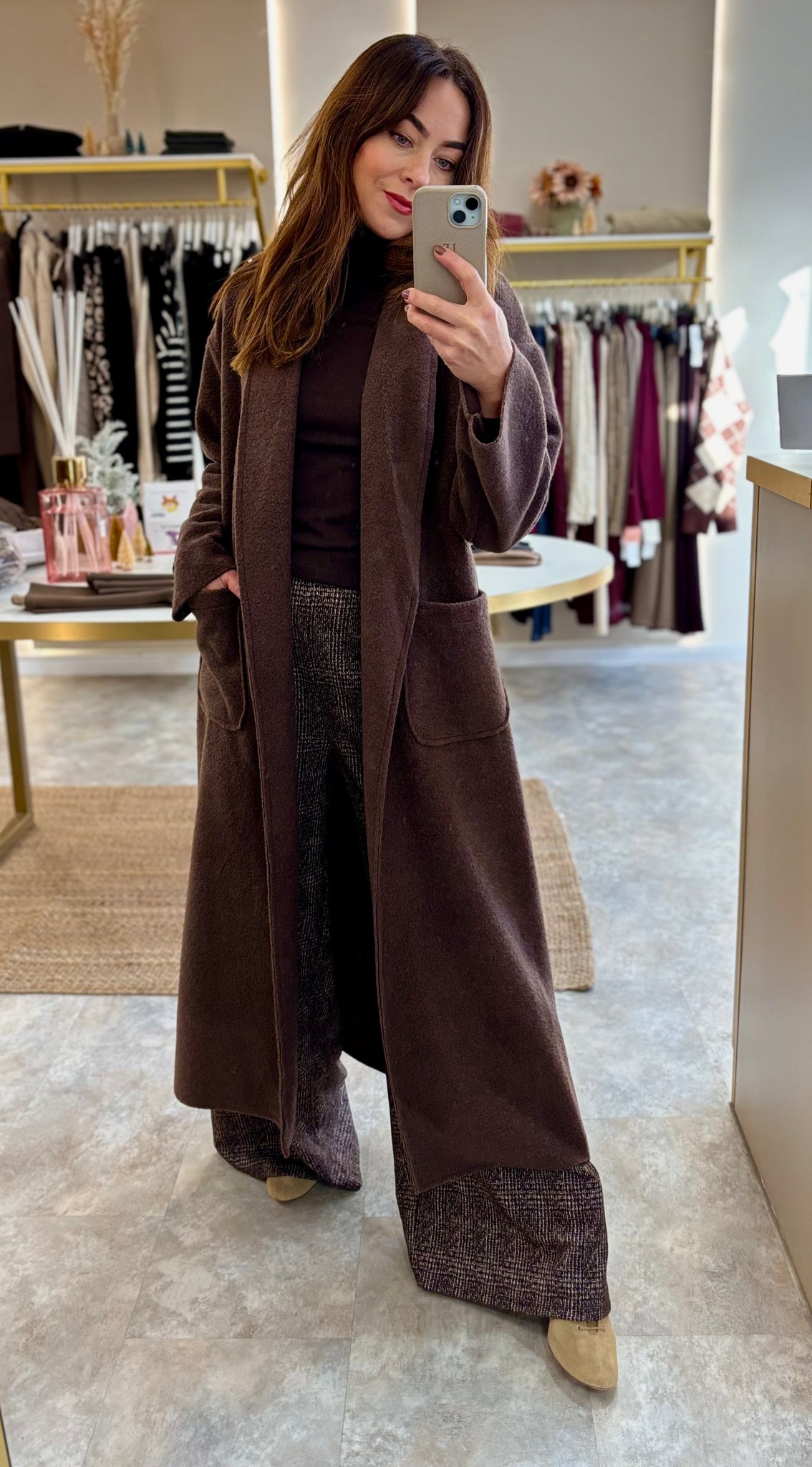 A soft, cosy coatigan that gives you that wrapped-up feeling without the bulk. It’s long, lightweight and easy to throw on with anything. The open front keeps it relaxed, the big patch pockets add a bit of charm and the neutral tone works with every outfit. Perfect for those days when you want to look put together but still feel comfortable.