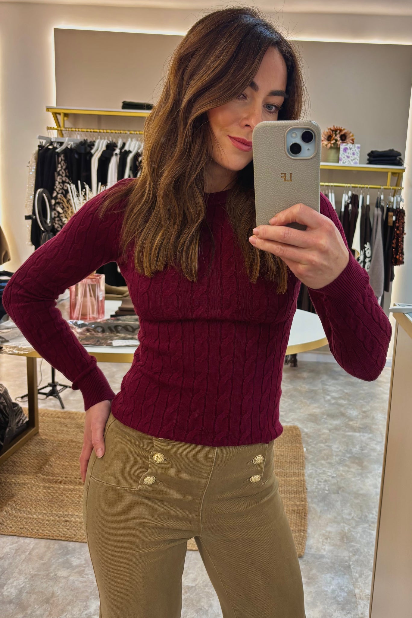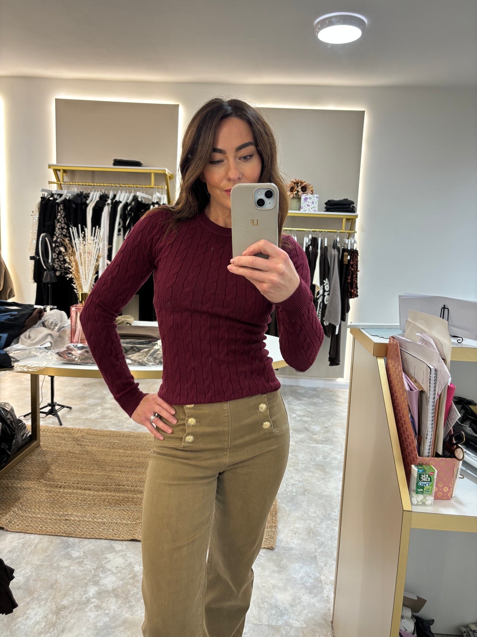 A soft cable knit with a timeless feel. This fitted jumper hugs in all the right places without feeling clingy. Made from a cosy knit that’s perfect for layering, dressing up or keeping it casual. Effortless, flattering and endlessly wearable.