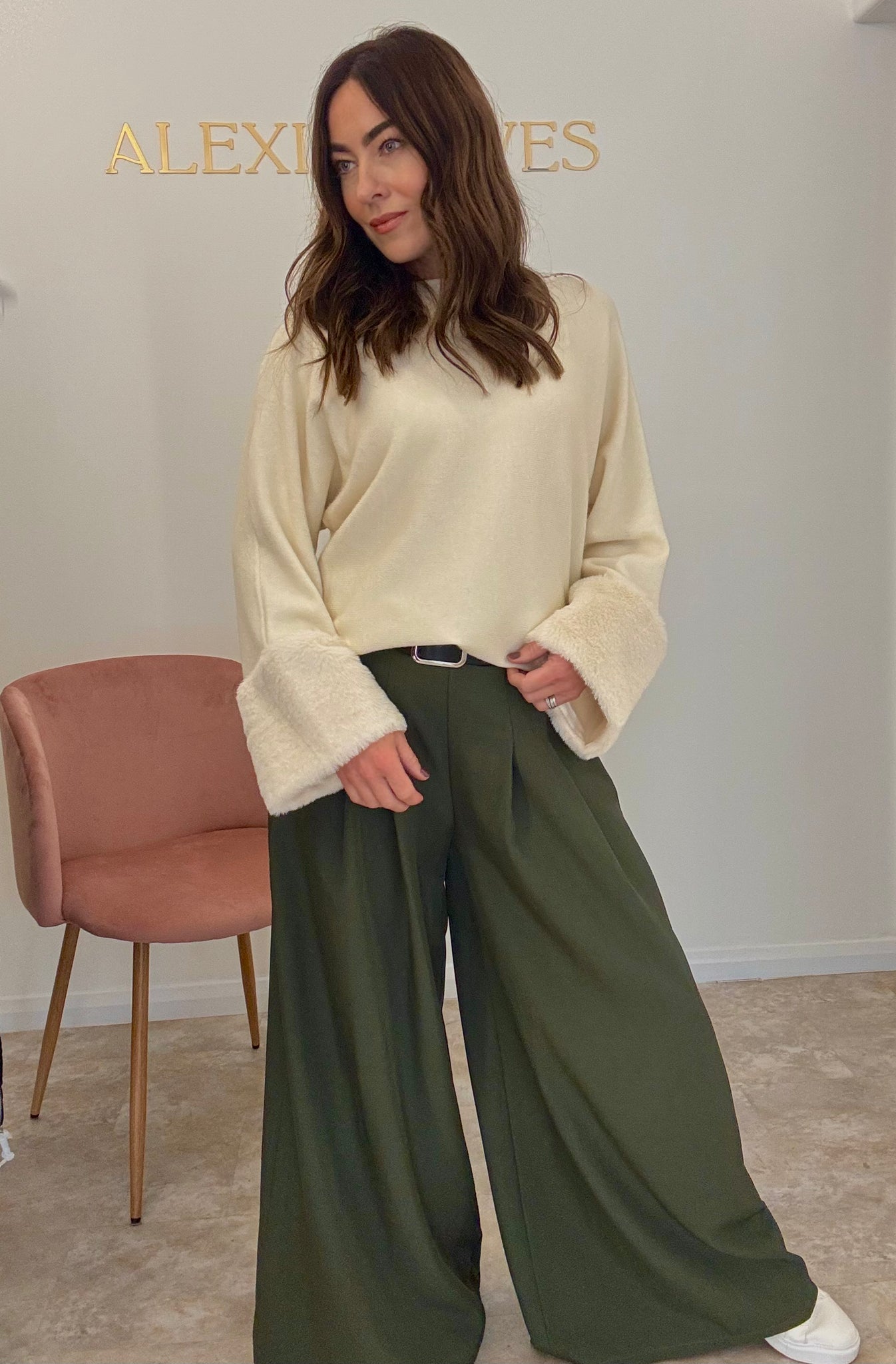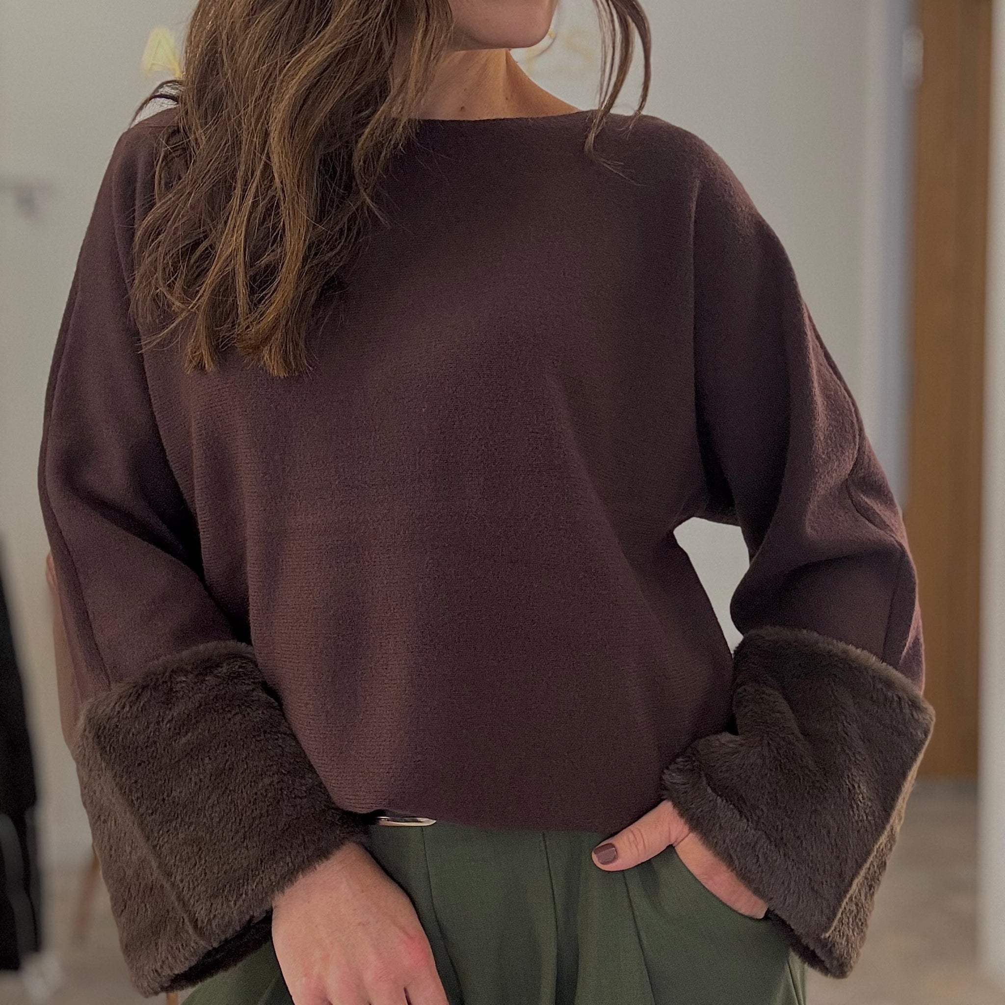 Elevate your wardrobe with the Jess Faux Fur Trim Sleeve Jumper. Crafted from a soft knit fabric, this sophisticated piece features a boat neck and elegant sleeves adorned with luxurious faux fur trim. Perfect for adding a touch of refined warmth to your look, this jumper effortlessly combines comfort and style for cooler days. Ideal for layering or wearing on its own, it’s a versatile addition to any collection seeking both fashion and understated glamour.