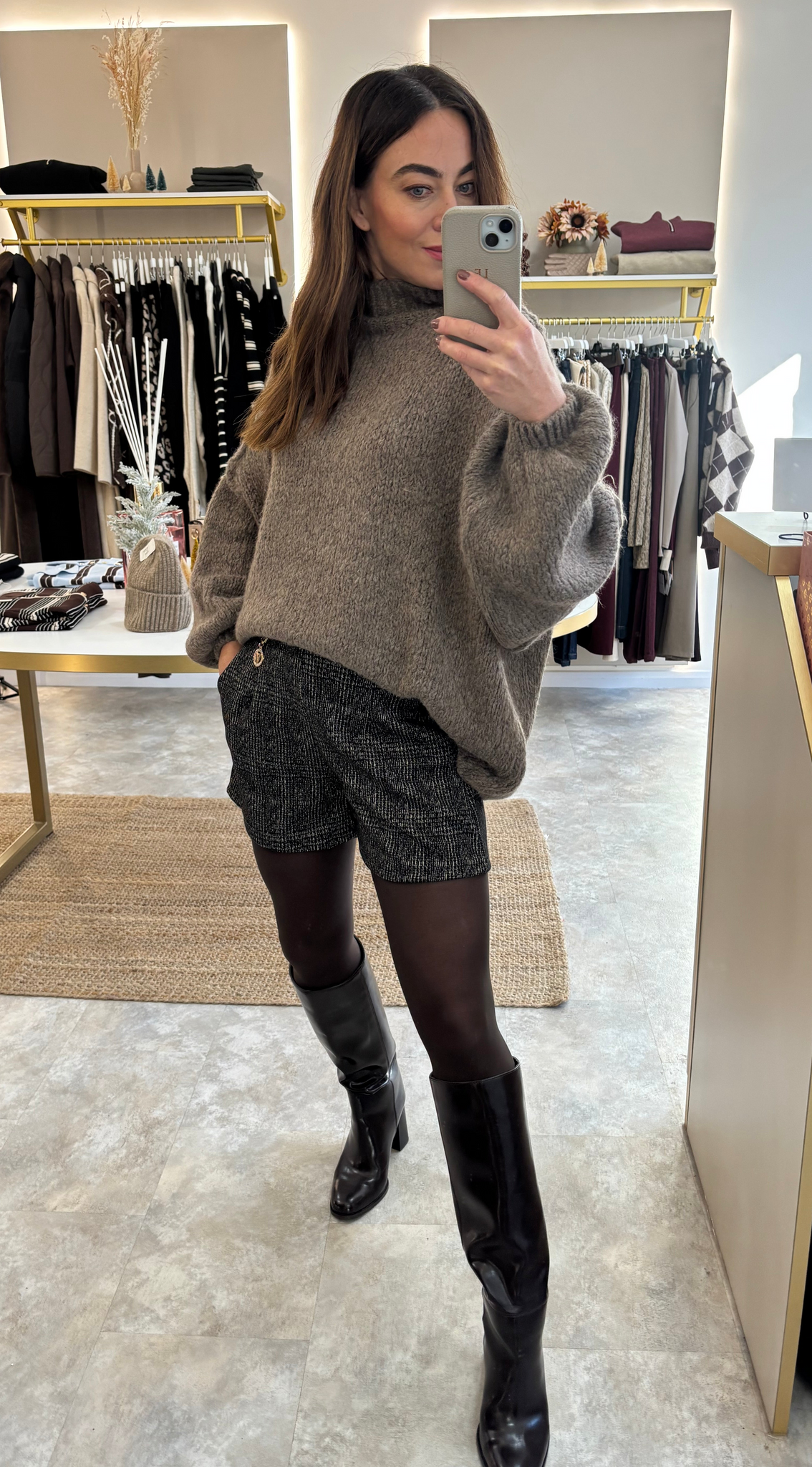 These are your smart-but-still-comfy shorts. The herringbone texture gives them a tailored feel and the elasticated waist keeps them easy to wear, then the belt pulls everything in so the fit looks clean and flattering.