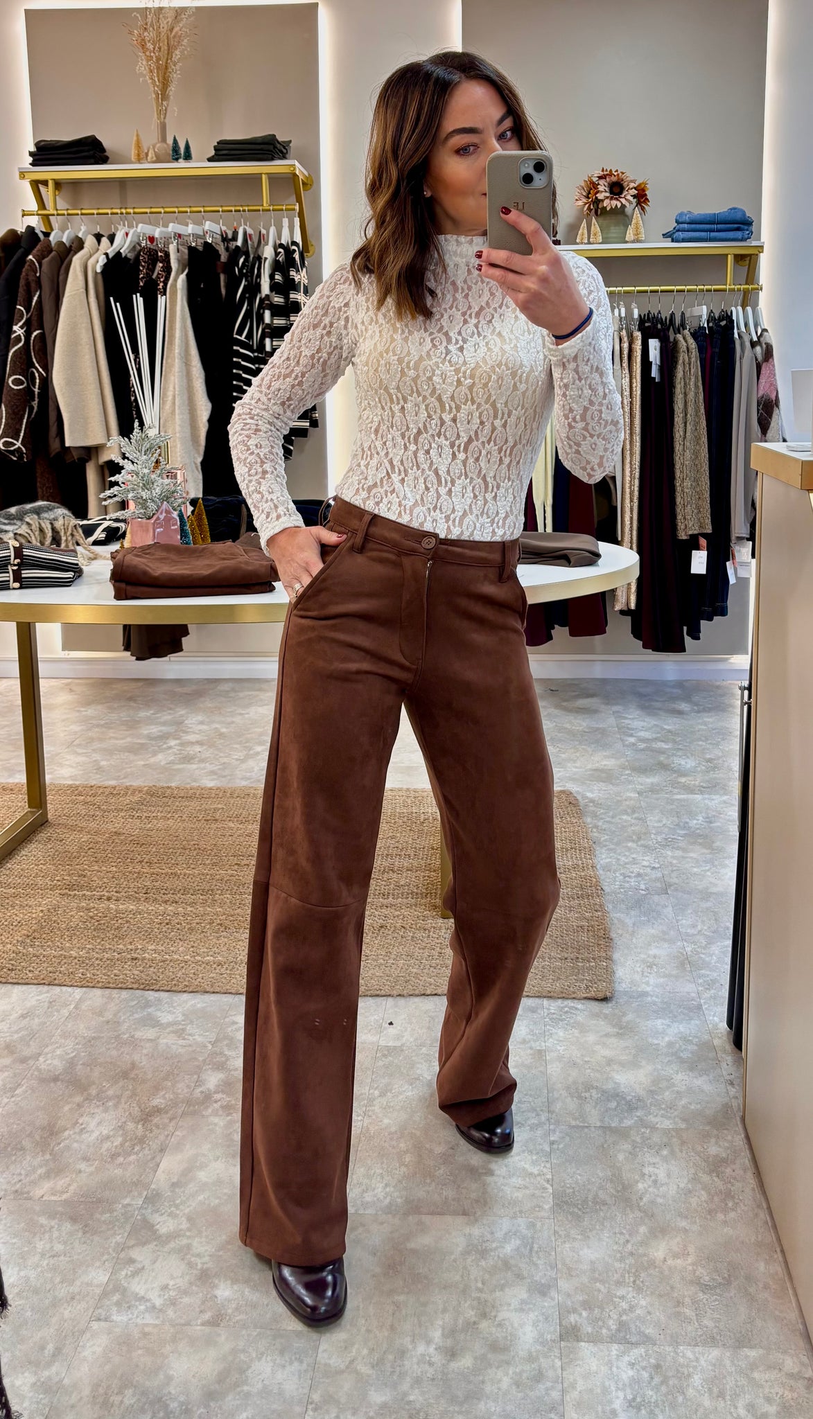 A delicate white lace top that’s lightweight, stretchy and easy to style. The whole piece is unlined, giving it that soft, sheer look that works beautifully for layering. Wear it with a tonal cami, a nude bra or under a blazer if you want something dressy without going over the top. Pretty, simple and really versatile.