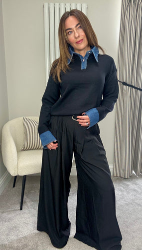 ACCENT COLLAR/CUFF BLACK KNIT JUMPER