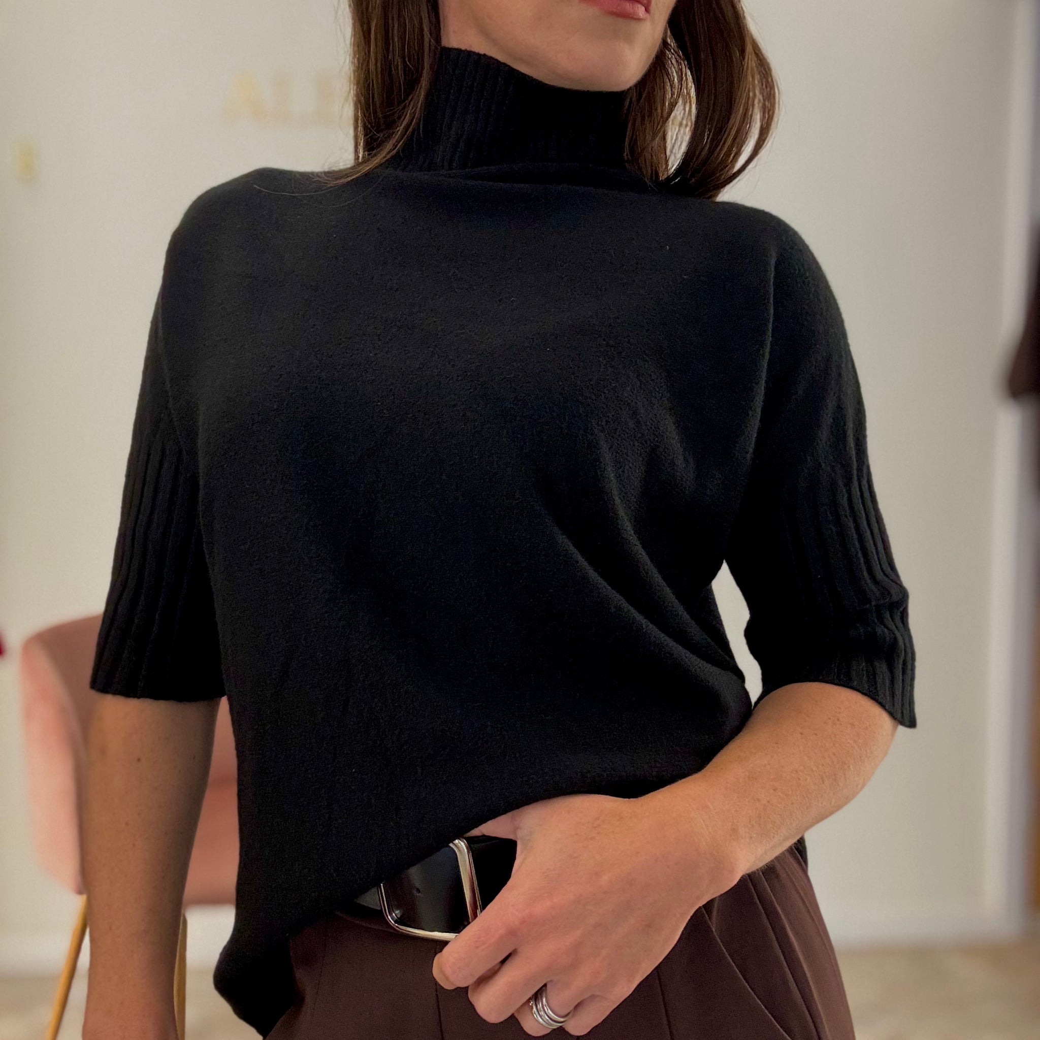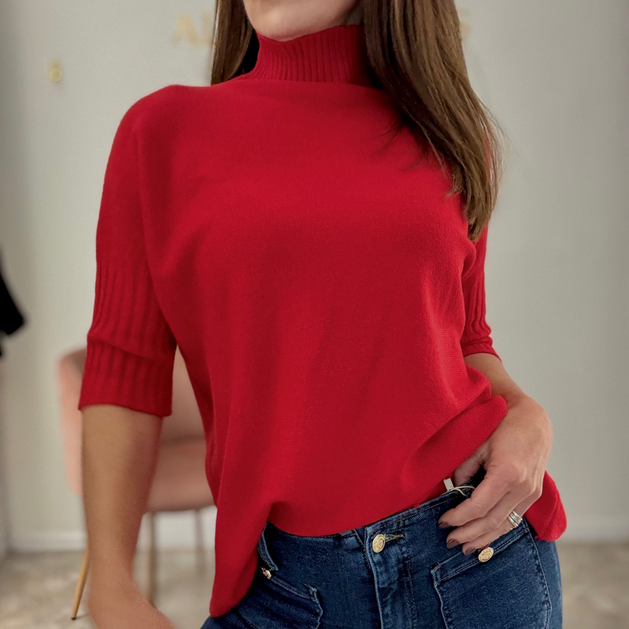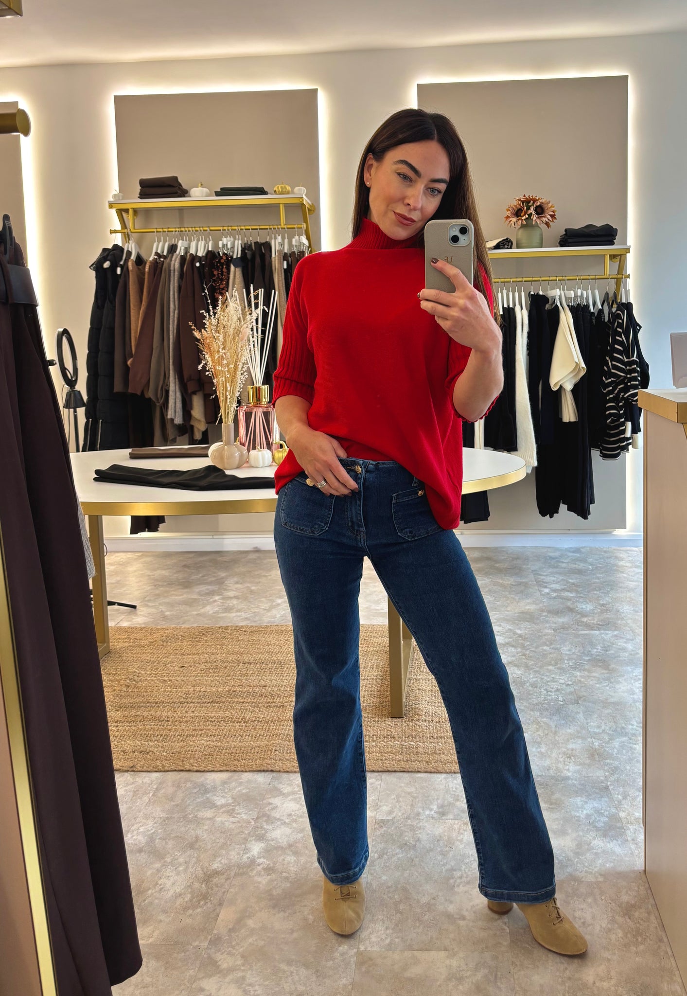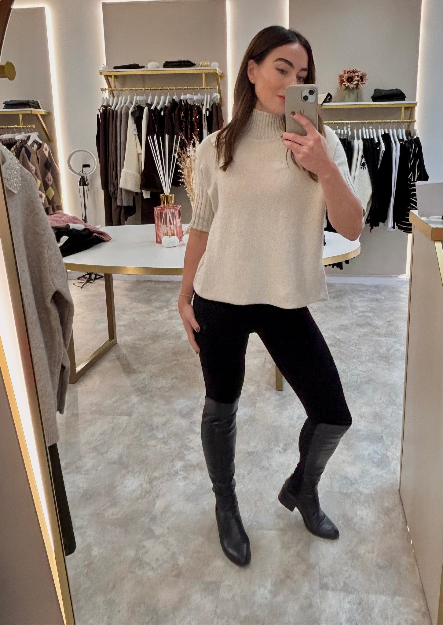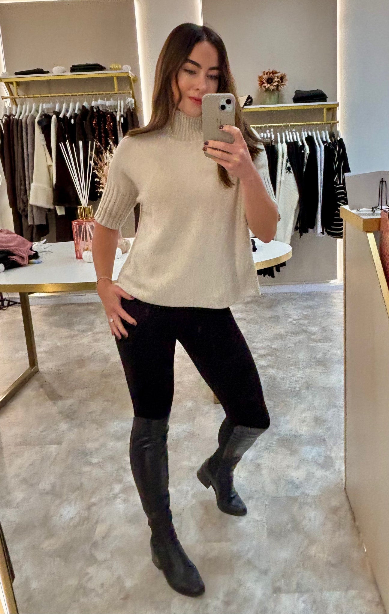 The knit that’s as easy as it is flattering. Made from a super soft blend with a ribbed funnel neck and matching ribbed elbow-length sleeves, it’s the perfect in-between piece for layering or wearing solo. Dress it up with tailored trousers or keep it casual with jeans — it always looks pulled together with zero effort.