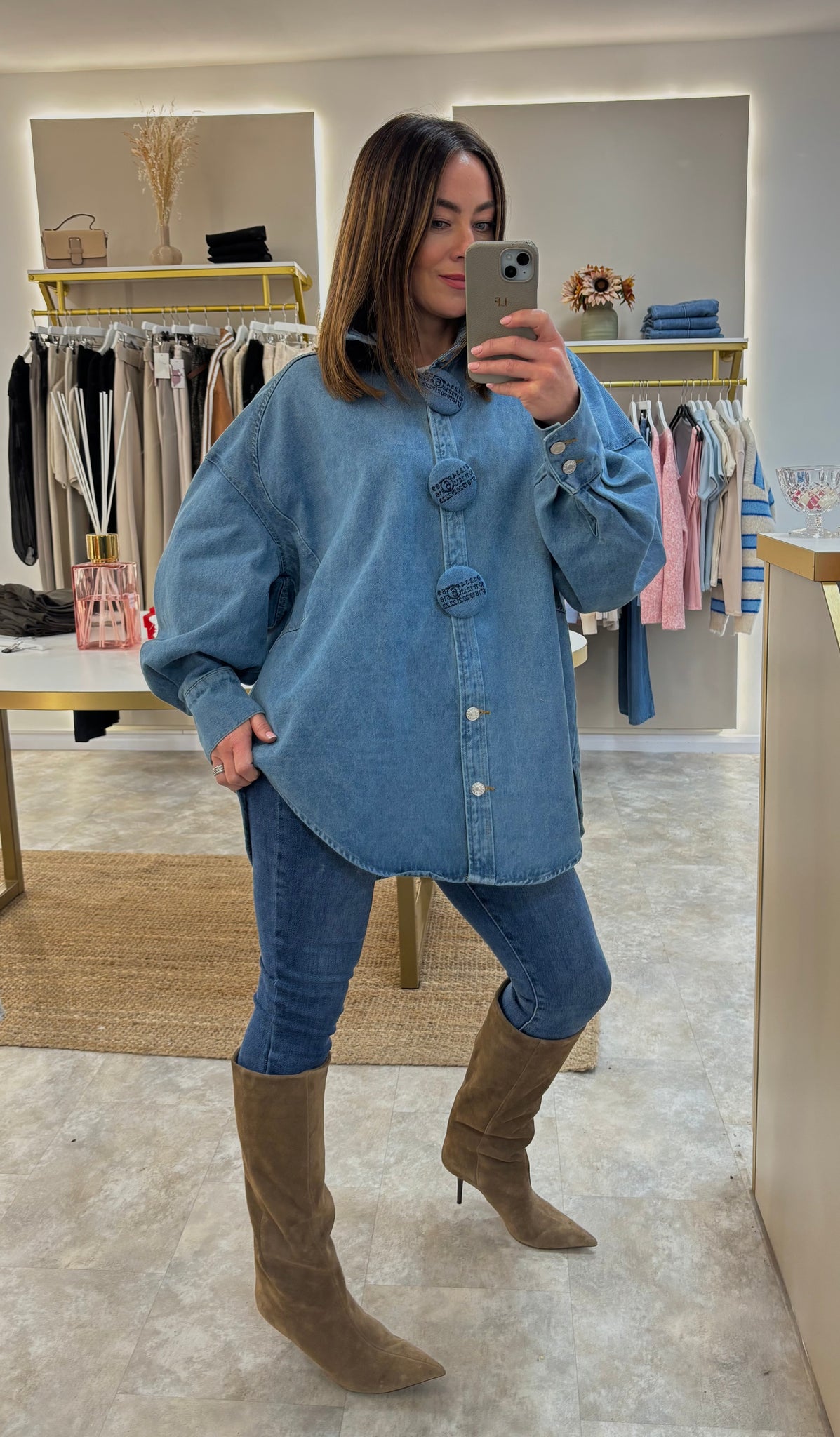 STATEMENT BUTTON OVERSIZED DENIM SHIRT