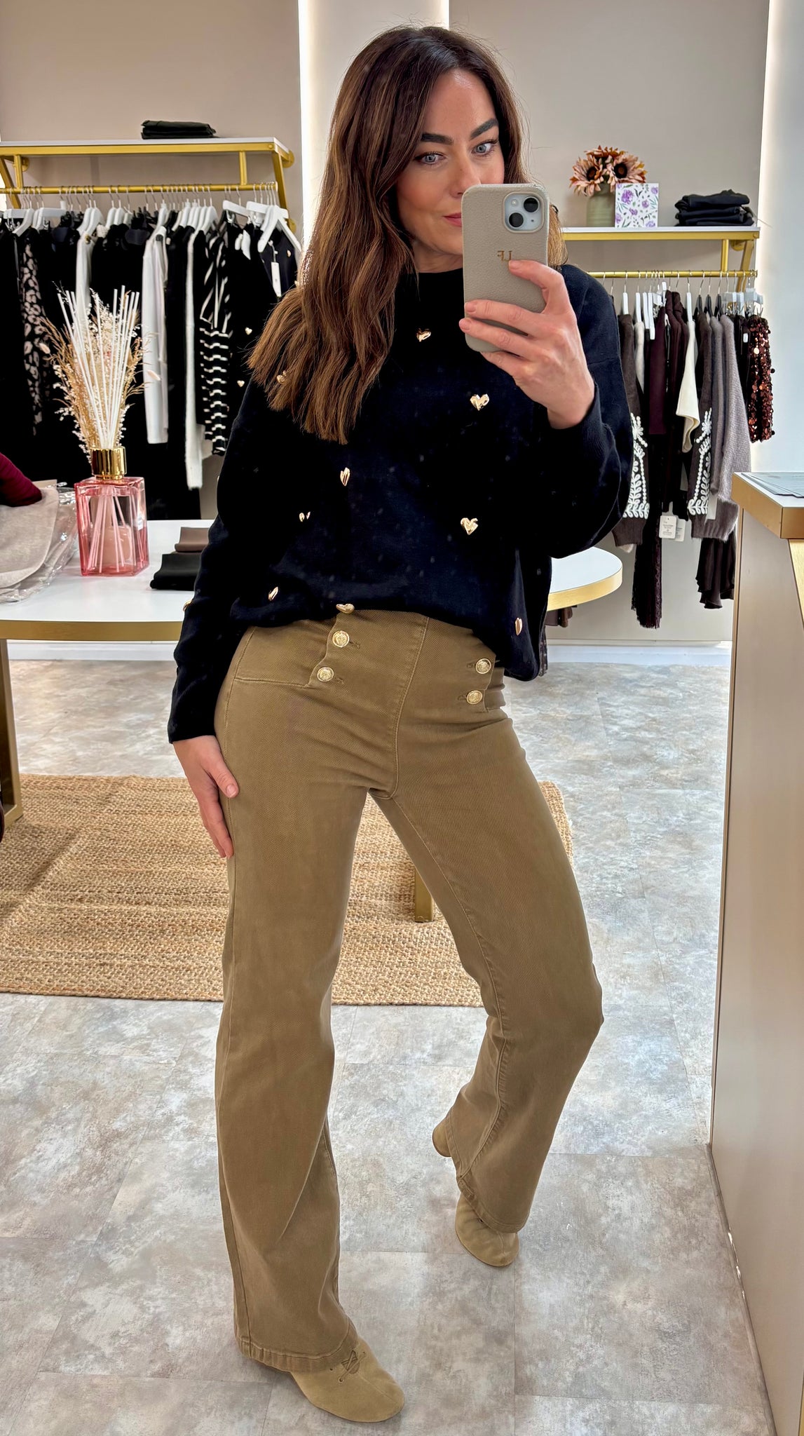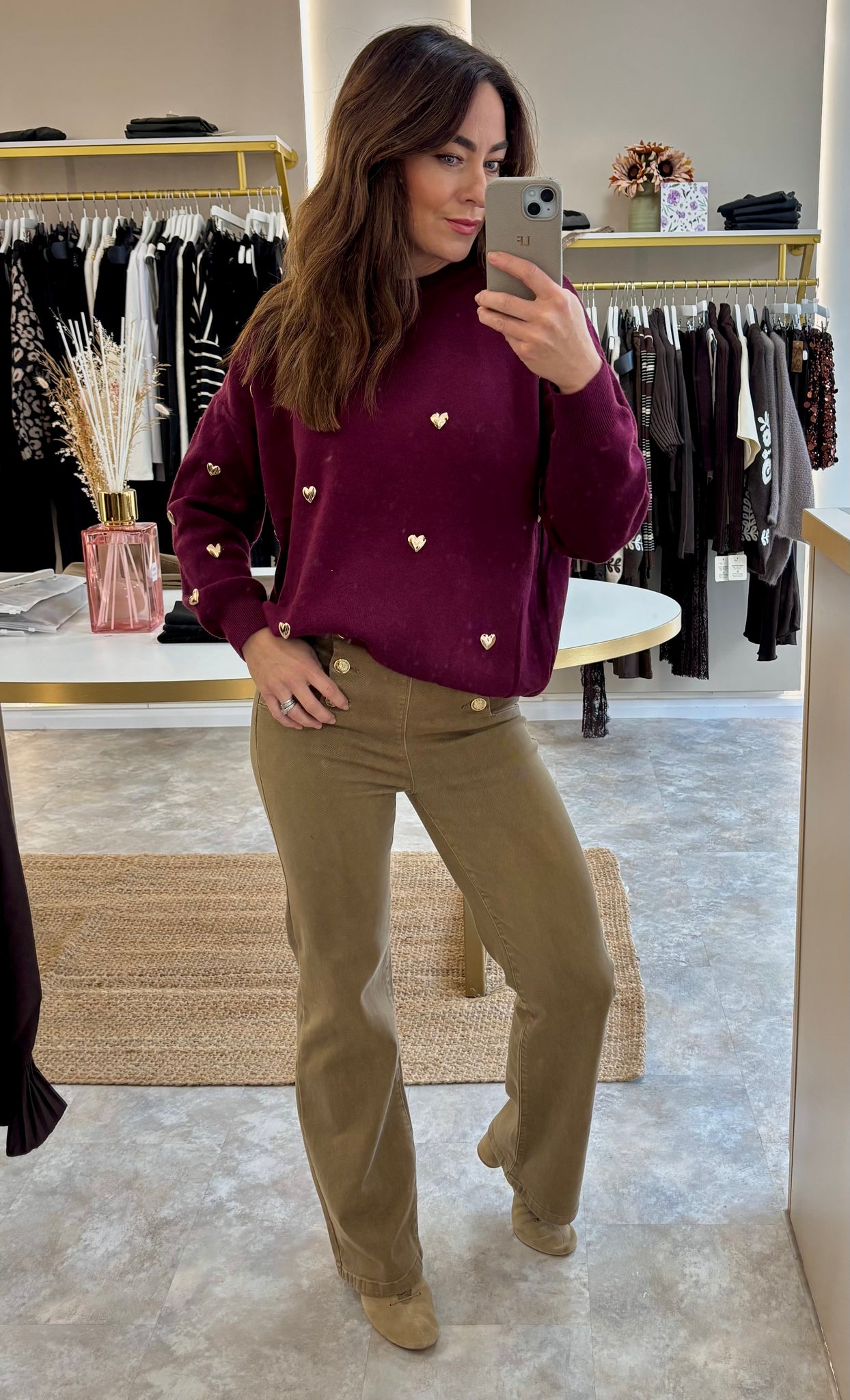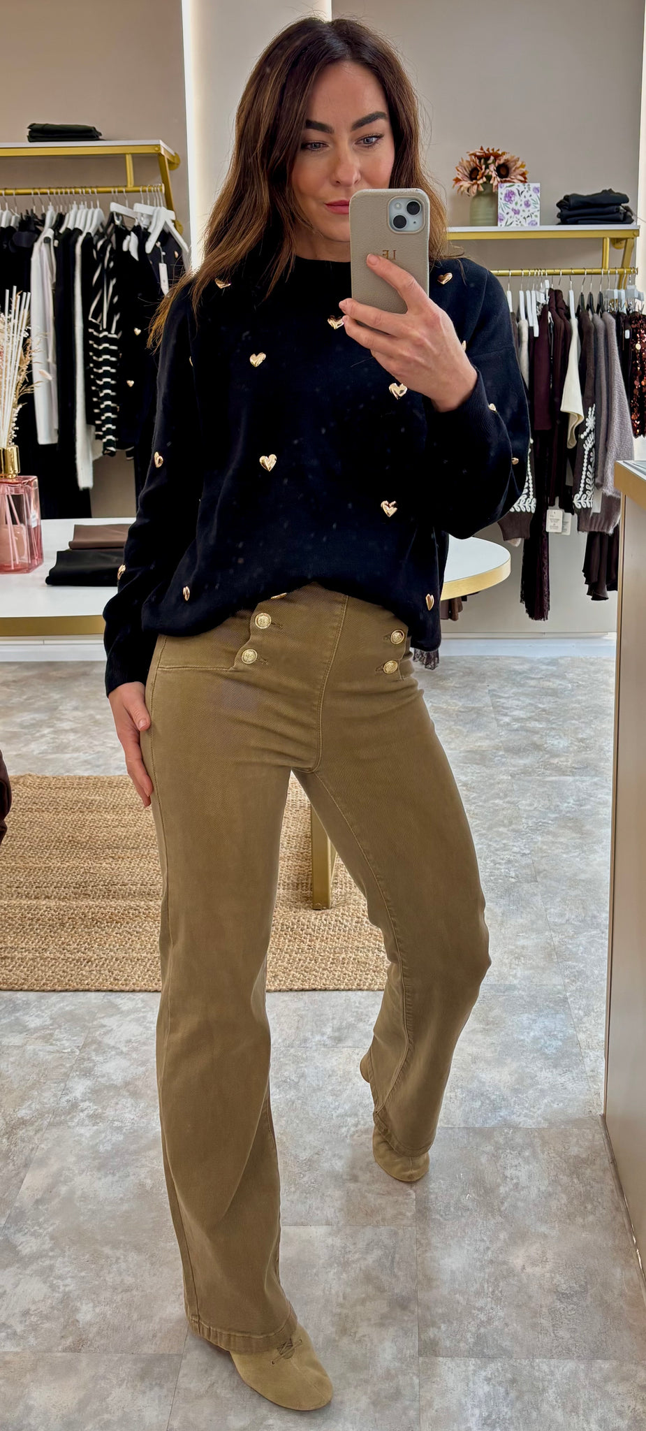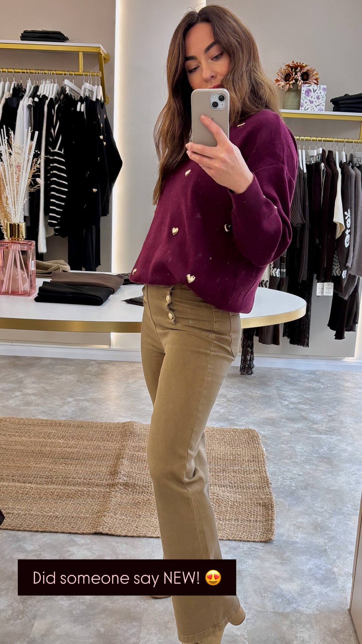 A little cosy, a little glam. The Heart Stud Knit is that effortless throw-on that still feels special. Scattered with gold heart studs, it adds just the right amount of sparkle without trying too hard. The relaxed fit and soft knit make it perfect for jeans, faux leather trousers or layered over a satin skirt.