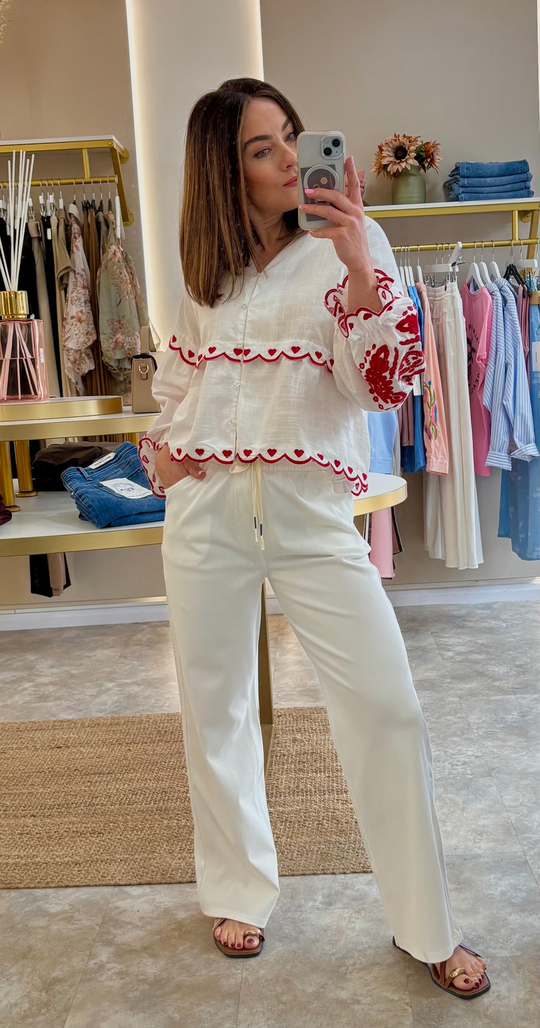 They’ve got that soft stretch denim feel, so they hold their shape but still move with you. The elasticated waistband and drawstring keep them comfortable, and the wide leg gives that relaxed, modern silhouette that just works with everything.